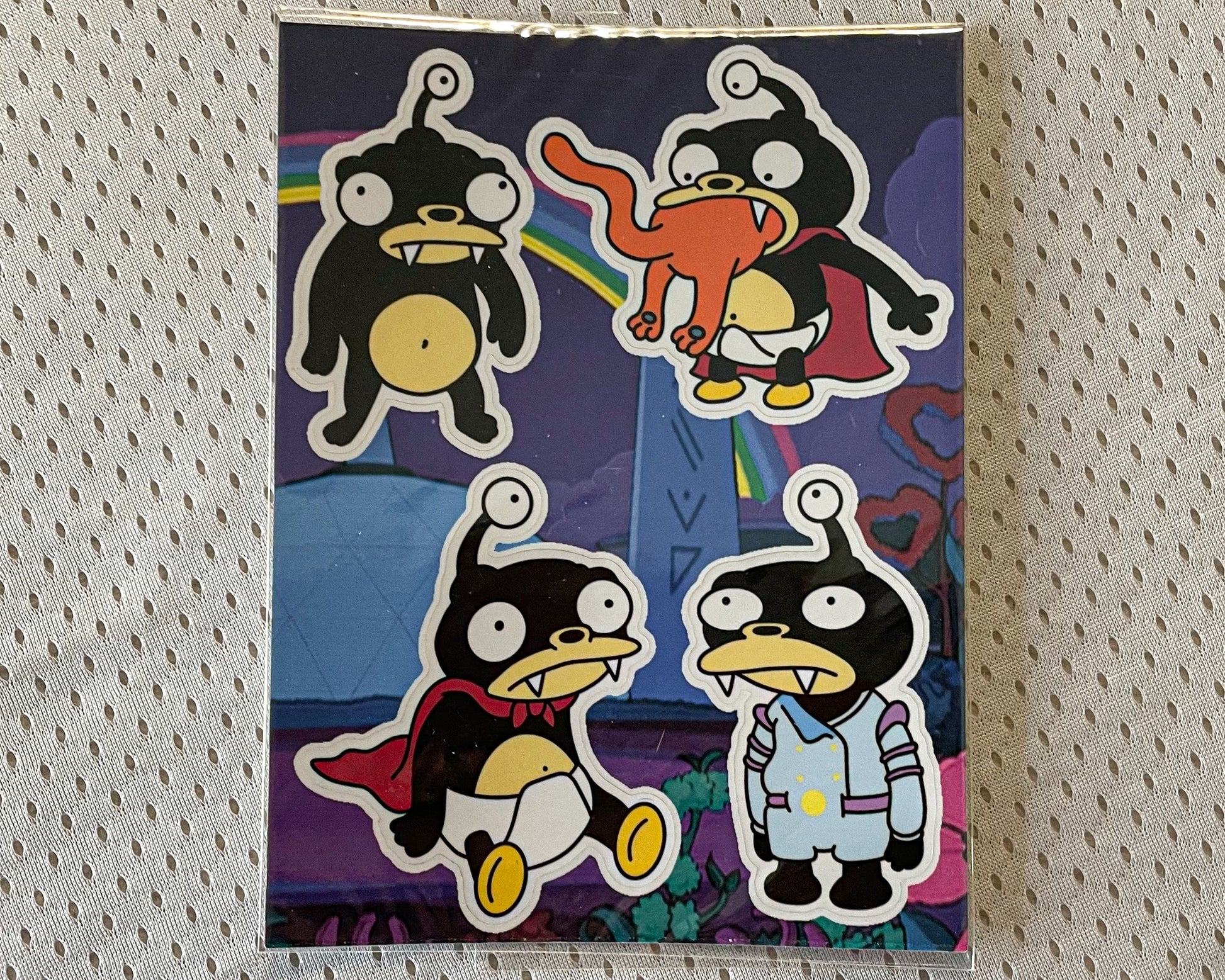 One Nibbler, four moods: fancy, feral, friendly, and feline-feasting. A must for any sticker-loving space nerd.