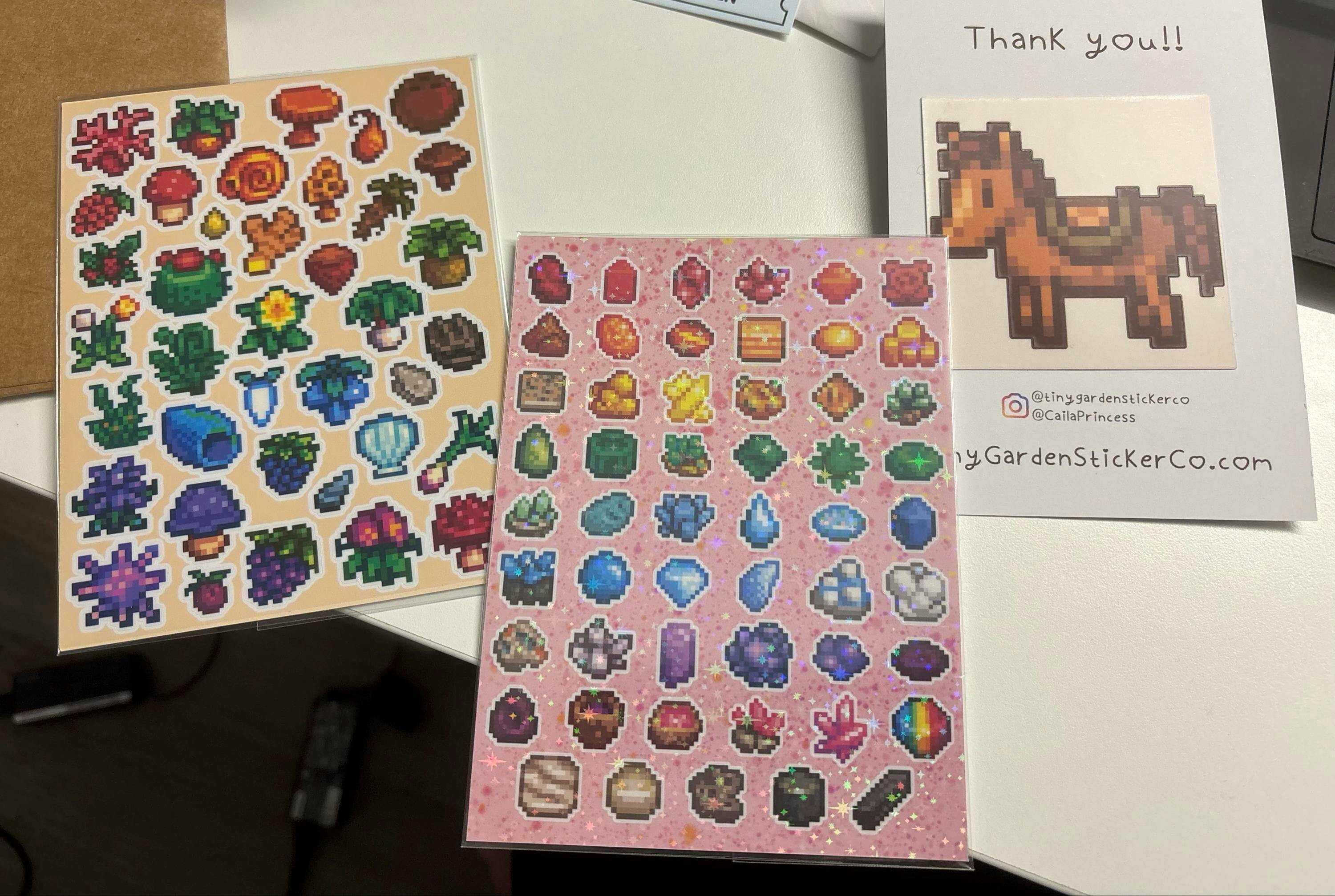 No mining required—just pure Stardew charm! ⛏️💎 This 4.5"x6" sticker sheet is packed with 53 shimmering gemstones and minerals from the game, ready to add sparkle to your journal, planner, or anything that could use a little extra shine.